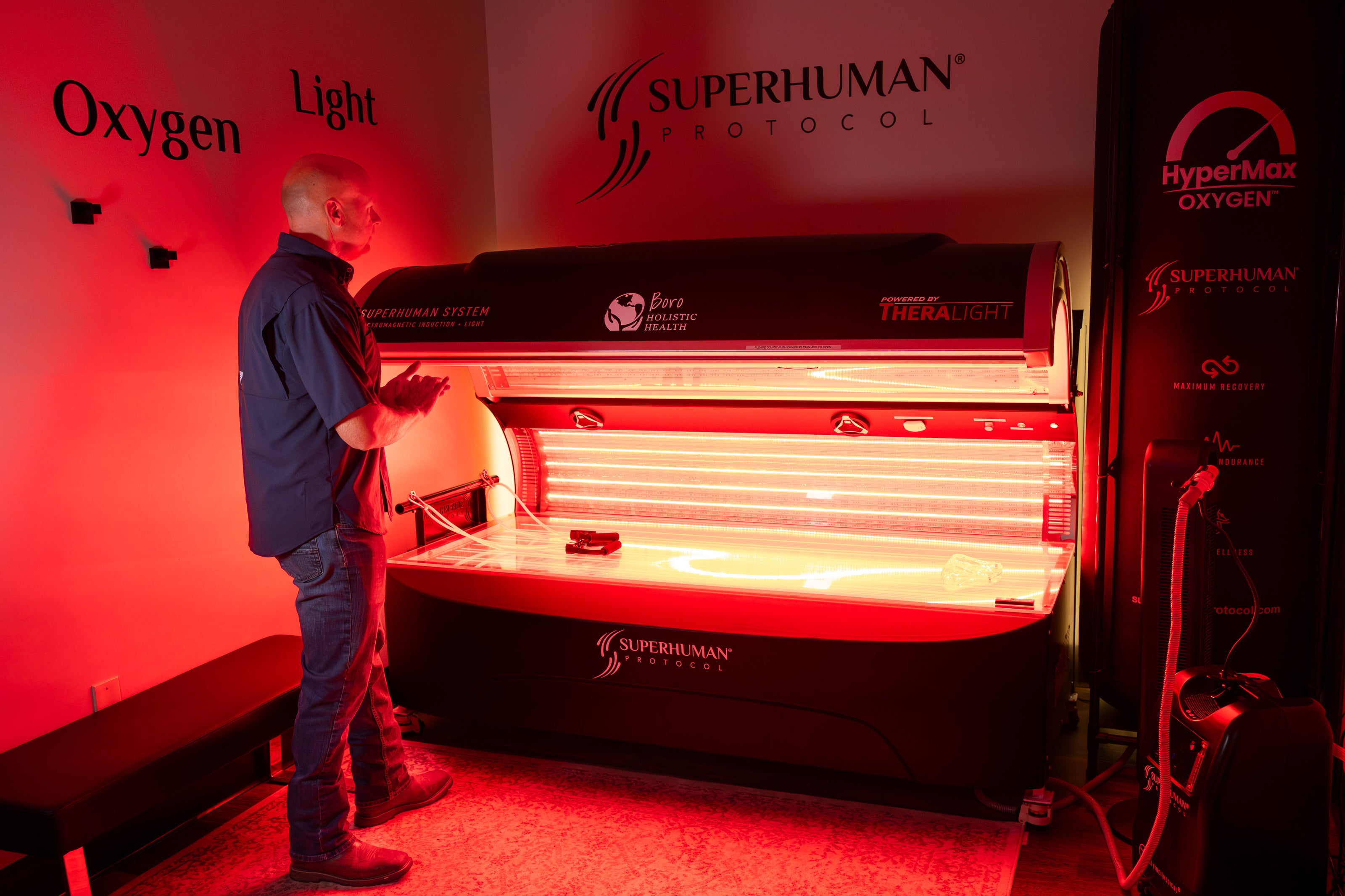 The Superhuman Protocol® uses magnetism, oxygen, and red light to support cellular balance, encourage vitality, and assist in recovery.